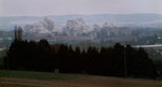 Beinahe gemächlich zerfallen zwei Hochhäuser, Monolithen gleich, vor unseren Augen in Staub. Wir beobachten aus sicherer Distanz, weit entfernt und beinahe statisch, von einer Anhöhe aus dieses Ereignis von historischem Ausmaß. Von Idylle und Kitsch weit und breit keine Spur, aber dennoch tun sich leise Referenzen an den Heimatfilm auf.