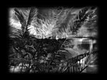 appear from time to time: outlines of people, urban architecture, palms from the title. But they are all dissolved by the rapid cross hatching, which allows the rhythmic element rather than